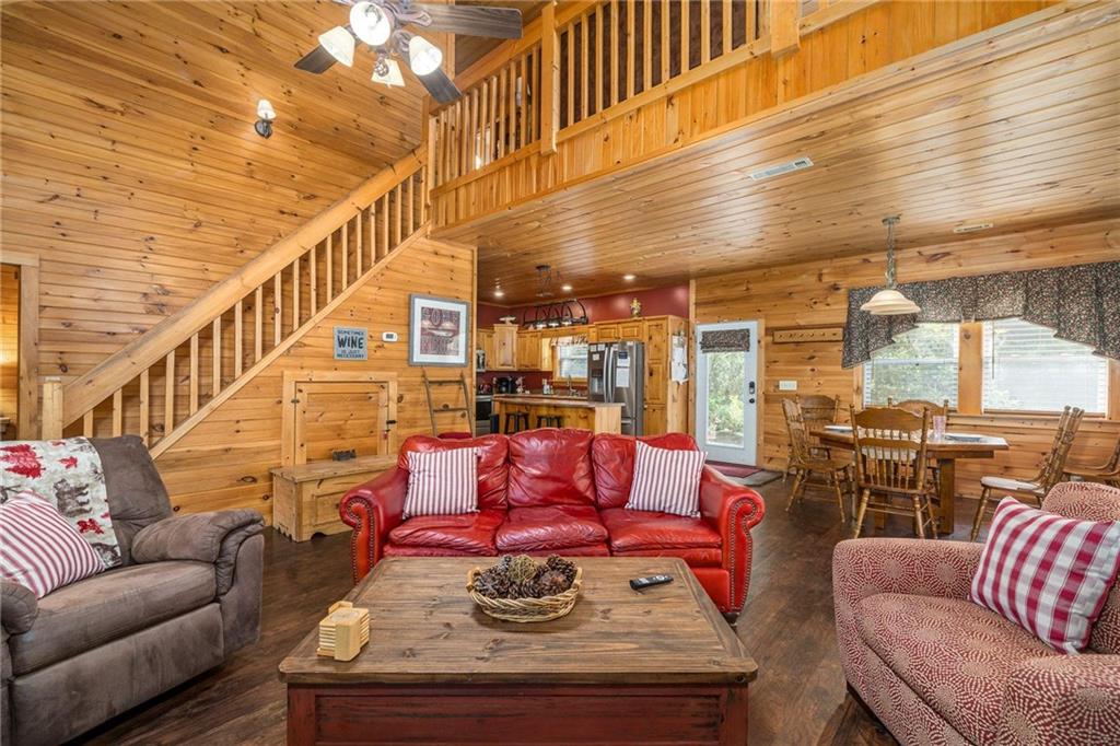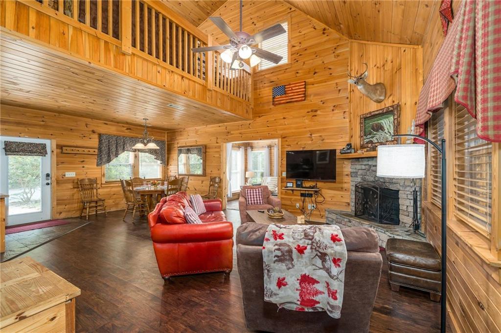 TURNKEY YEAR ROUND SHORT-TERM VACATION RENTAL WITH VERIFIABLE INCOME. END UNIT. Breathtaking mountain views and sunsets. Sleeps up to 8 comfortably. Perfect absentee owner/investor opportunity - condo association maintains building exterior, road, landscape maintenance so you can be assured you or your guests can fully relax and enjoy every minute. Restricted to only 8 units. On 11 acres with 500 feet of Toccoa river extending to middle of river and a wonderful riverfront park featuring fire pits and benches. Terrific trout fishing. fully furnished and beautifully decorated in traditional mountain cabin motif. Fully equipped for housekeeping; cookware, appliances, utensils, dinnerware, linens, etc. Screened patio features a hot tub and sitting area and direct access to highway 60. Minutes from Chattachoochee National Fiorest. and other attractions.